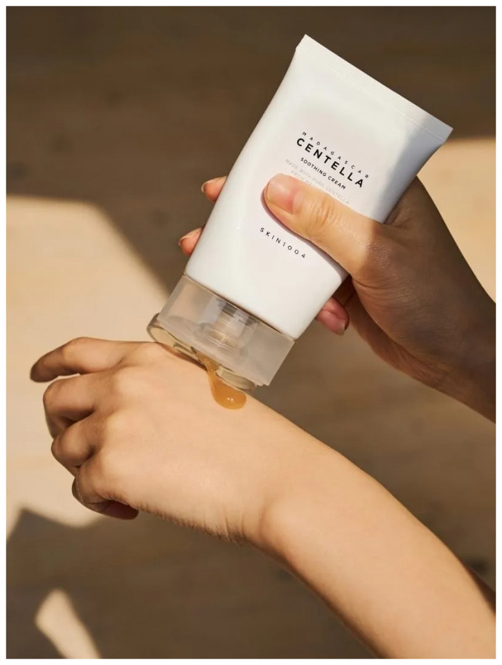 Η Skin1004 Madagascar Centella Soothing Cream είναι ελαφριά αναζωογονητική κρέμα-τζελ για ευαίσθητο, με τάση ακμής, λιπαρό και μικτό δέρμα. Περιέχει 72% εκχύλισμα centella asiatica για να καταπραΰνει το δέρμα, κεραμίδια για την αναγέννηση του δερματικού φραγμού, εκχύλισμα τζίντζερ που παρέχει αντιφλεγμονώδη δράση και βοηθά στην επούλωση της ακμής και εκχύλισμα κακάο που θρέφει το δέρμα. Μια κρέμα που ενυδατώνει, καταπραΰνει, αναγεννά.