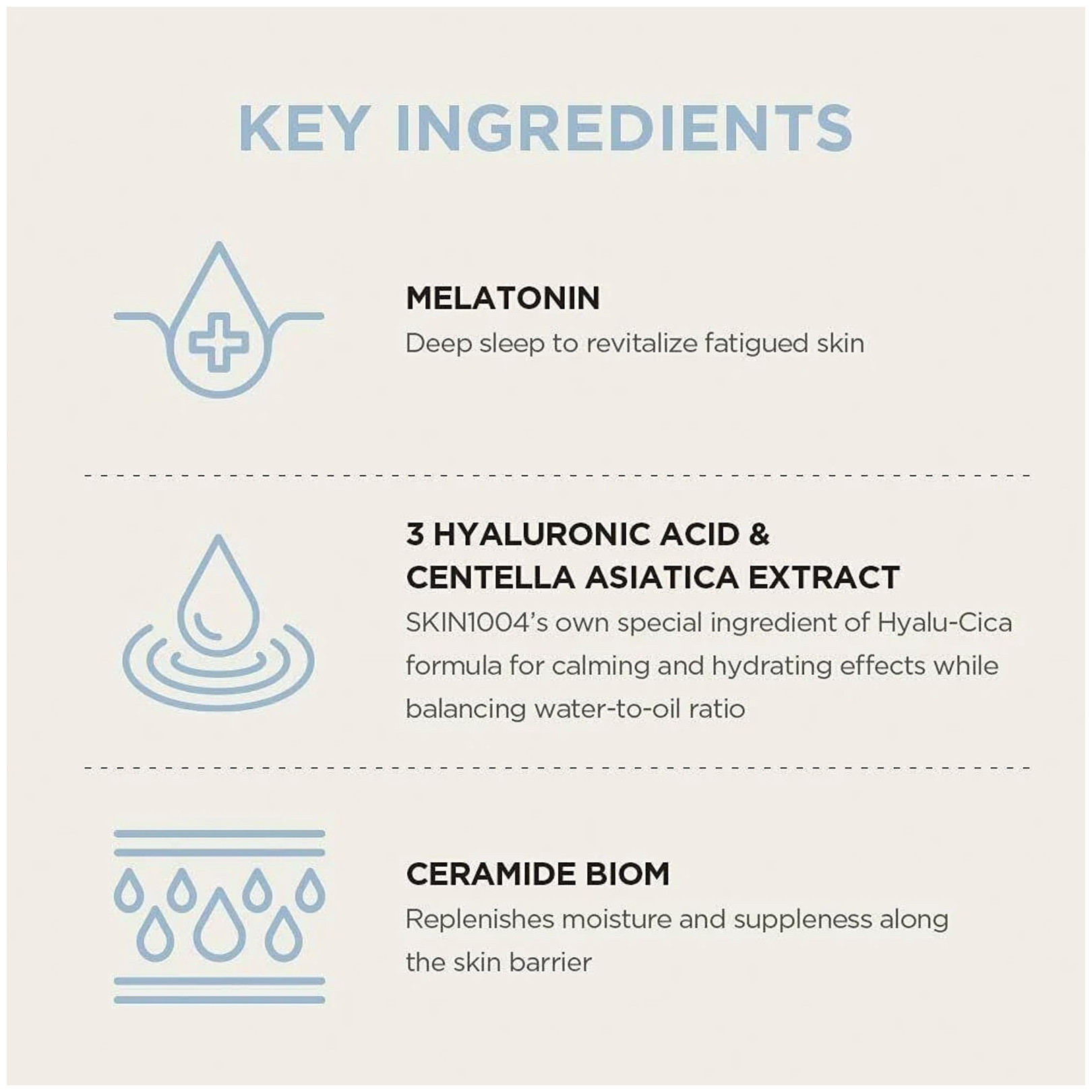 Αποκτήστε όμορφη επιδερμίδα κατά τη διάρκεια του ύπνου. Η μάσκα ομορφιάς SKIN1004 Madagascar Centella Hyalu-Cica Sleeping Pack καταπραΰνει και αναπλάθει την επιδερμίδα κατά τη διάρκεια της νύχτας. Χάρη στα δραστικά συστατικά όπως υαλουρονικό οξύ και σεντέλα ασιατική για ενυδάτωση και μελατονίνη για σύσφιξη, η επιδερμίδα αποκτά ξανά φρέσκια και ξεκούραστη όψη.